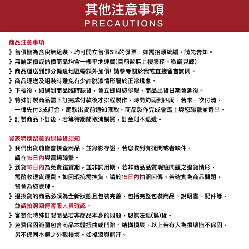 4》客製化的特殊訂製商品若非商品本身的問題,恕無法退(換)貨。