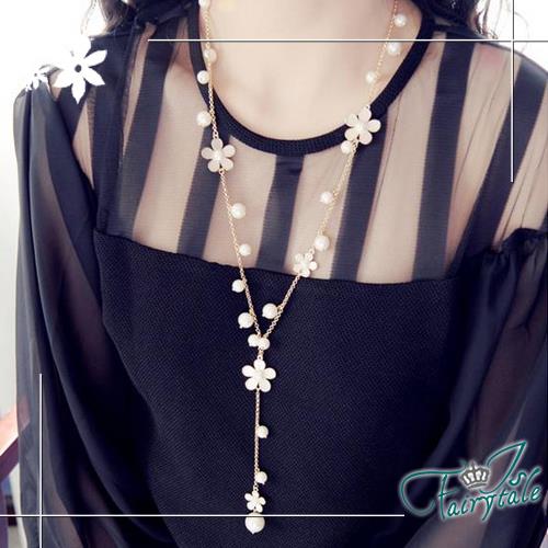 【伊飾童話】優雅白花 垂墬珍珠長鍊