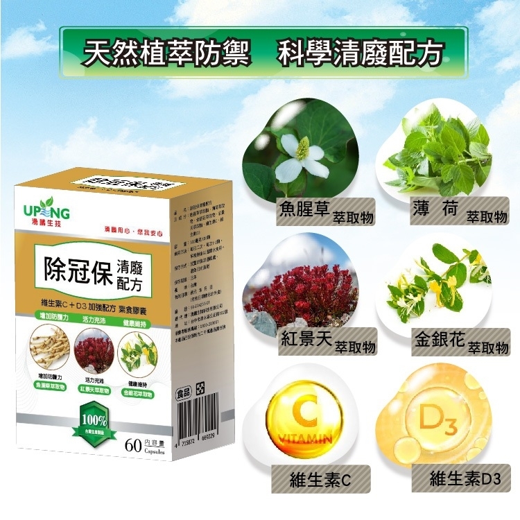 嚴選魚腥草、薄荷、金銀花、維生素C+D3四大防禦元素