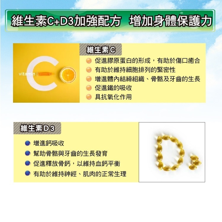 搭配維生素C、維生素D3等專業精選配方,是滋補強身、健康維持的好幫手!!