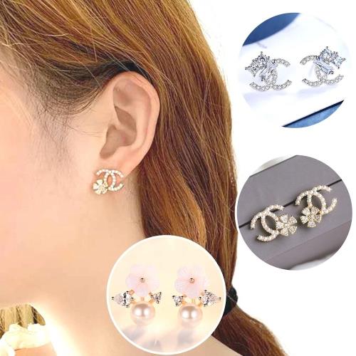 【Emi艾迷】優雅小香風格珍珠鋯石925銀針耳環多款選