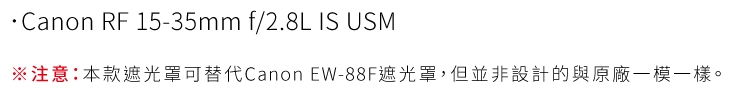 ●【品名】JJC佳能Canon副廠遮光罩LH-RF1535F28(相容原廠EW-88F遮光罩)適RF 15-35mm f2.8L IS USM