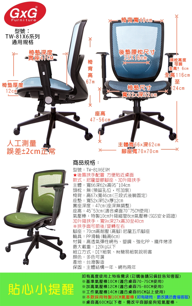購買注意事項:本座椅高度,均以搭配標準桌高70~75CM使用。