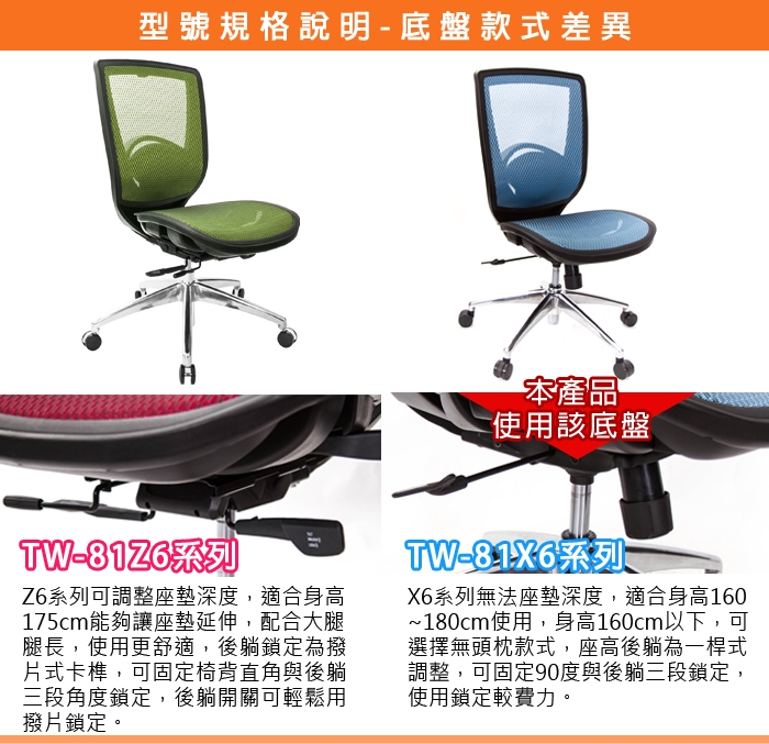 TW-81X6系列與TW-81Z6系列,最大差異在座墊底盤功能。