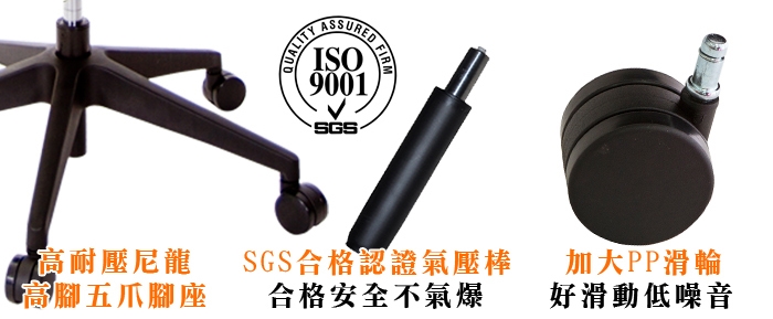 電腦椅透過『氣壓棒』來調整坐墊升降功能,調至個人最舒適座面高度,且台灣生產的氣壓棒,通過SGS合格安全認證,品質良好、耐用,不會有氣爆、爆炸的問題。