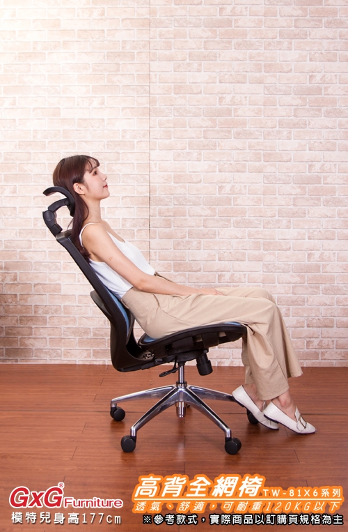 覺得傳統泡棉椅背,太過厚重、悶熱嗎!?本款椅背材採用透氣網布材質,長時間背靠時不悶熱、透氣性佳,椅背造型採ㄑ型曲面設計,不用特別加腰枕,也能讓您背部更加服貼椅背。