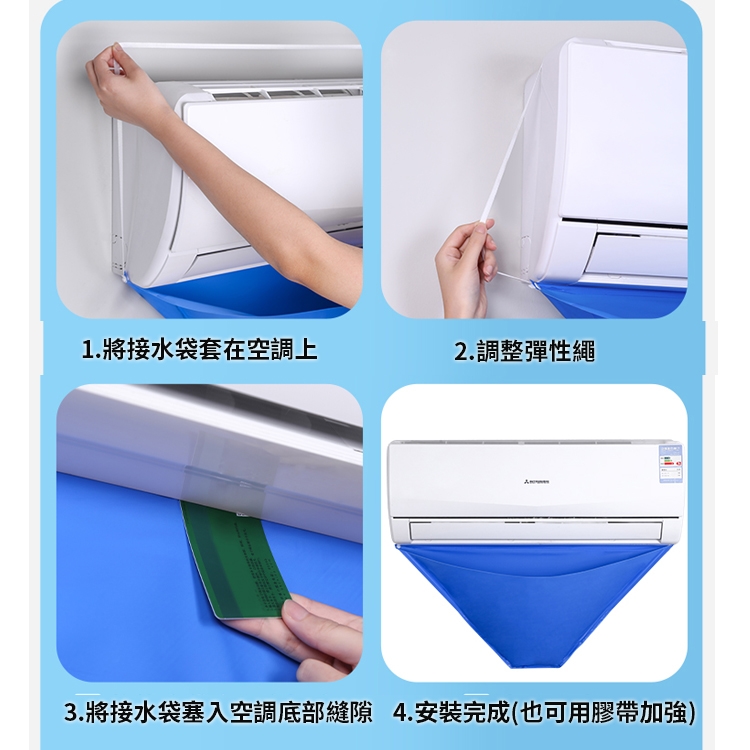 將集水袋塞到空調縫隙包覆下方,彈力繩可彈性伸縮,適用大部分冷氣機型,