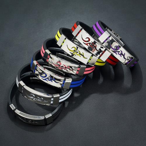 【RJ New York】火焰紋章可調中性矽膠不鏽鋼手環手鍊(7色可選)
