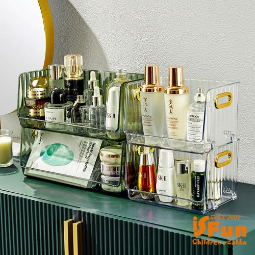 iSFun 鑽石紋格 U型可堆疊透明鍍金把手收納盒 小號