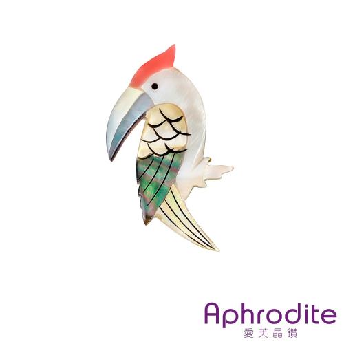 【愛芙晶鑽】天然鮑魚貝鑲嵌可愛啄木鳥造型胸針 造型胸針