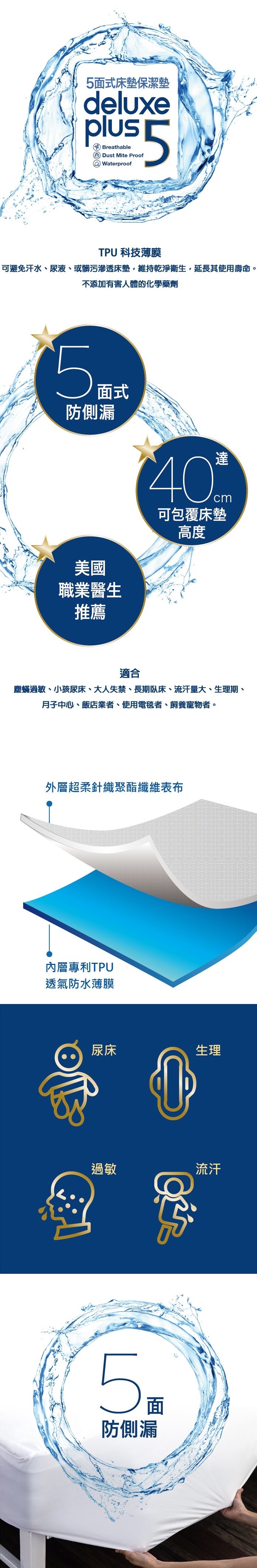 ◆ 品項:Deluxe Plus5 五面式床墊保潔墊 雙人