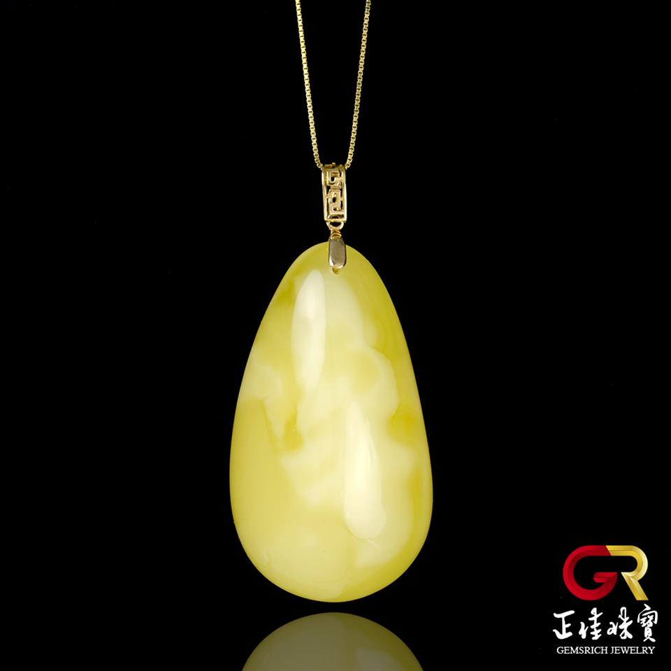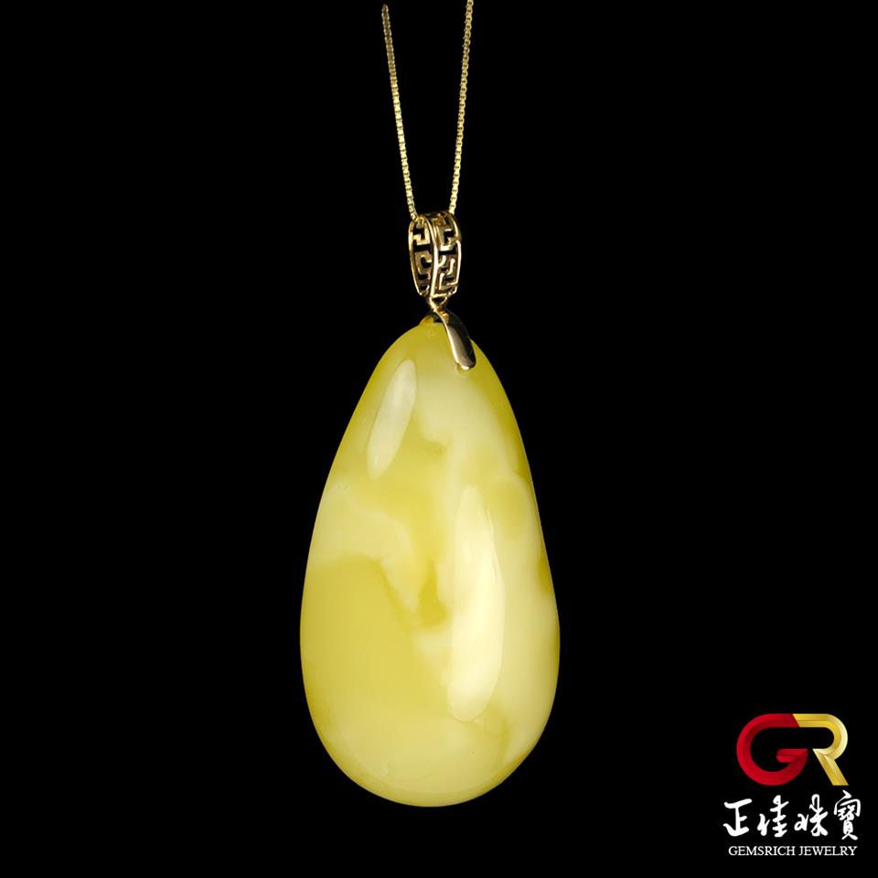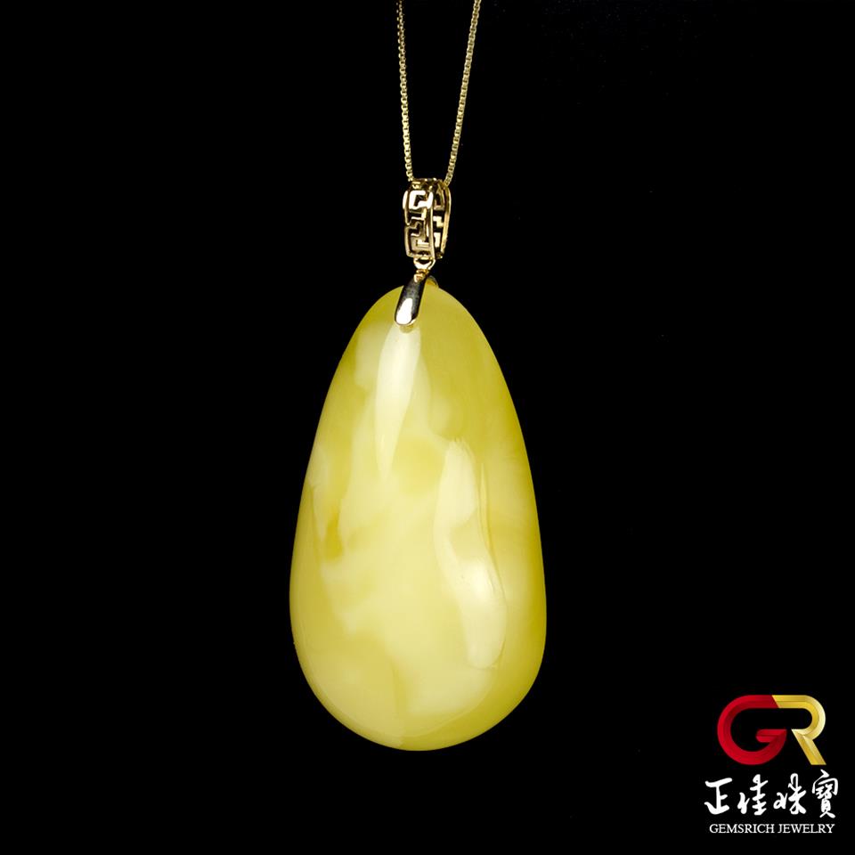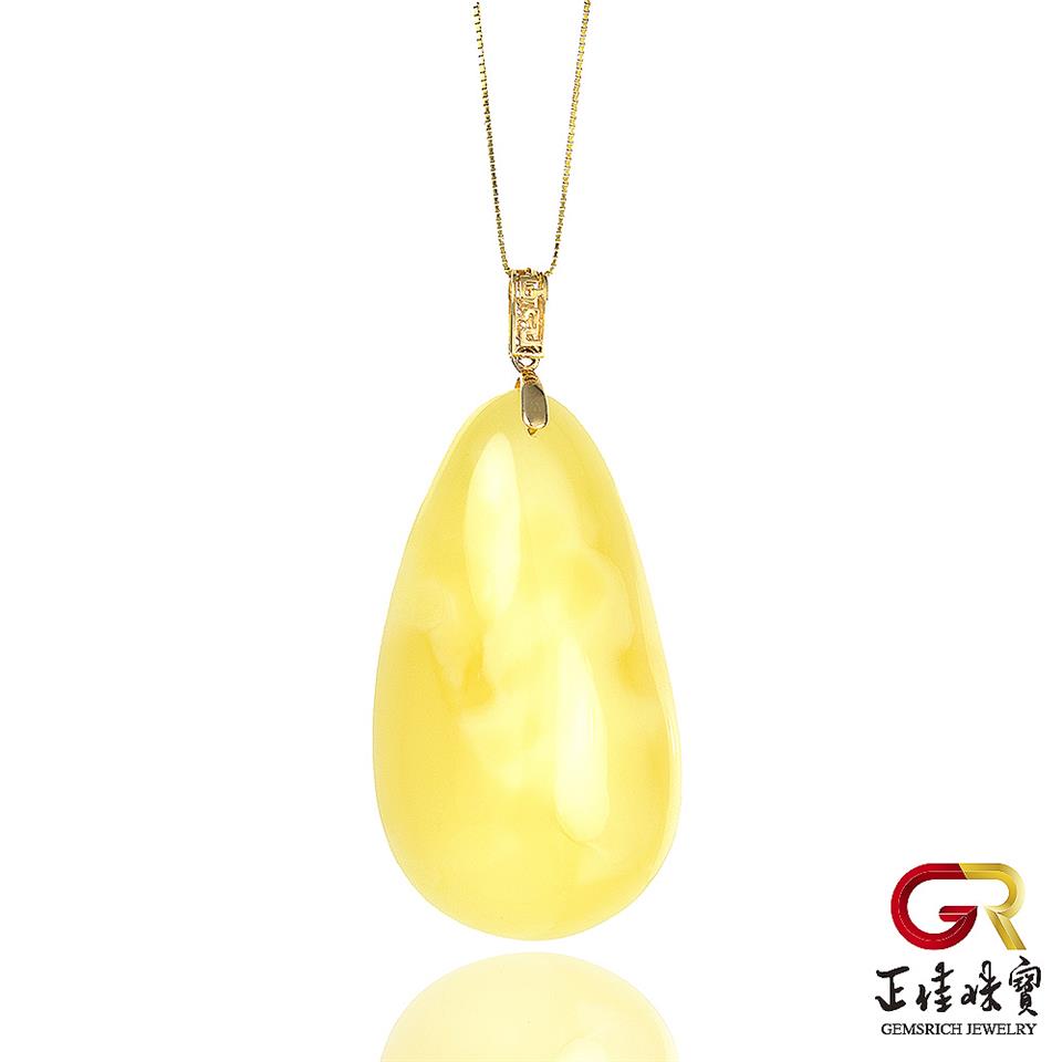 主角:蜜蠟 經典白金水滴吊墜 獨一單品琥珀蜜蠟吊墜 14.3g|18K金夾頭 (此品皆附贈925銀電鍍K金項鍊)