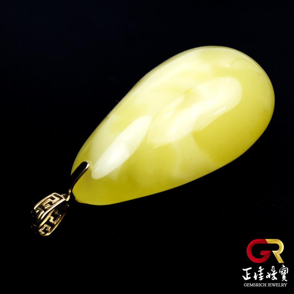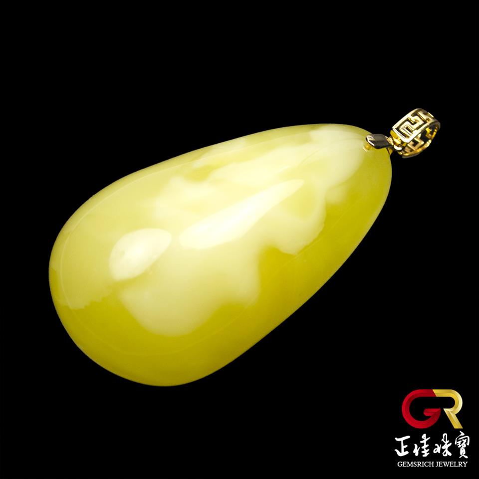 蜜蠟 經典白金水滴吊墜 獨一單品琥珀蜜蠟吊墜 14.3g|18K金夾頭