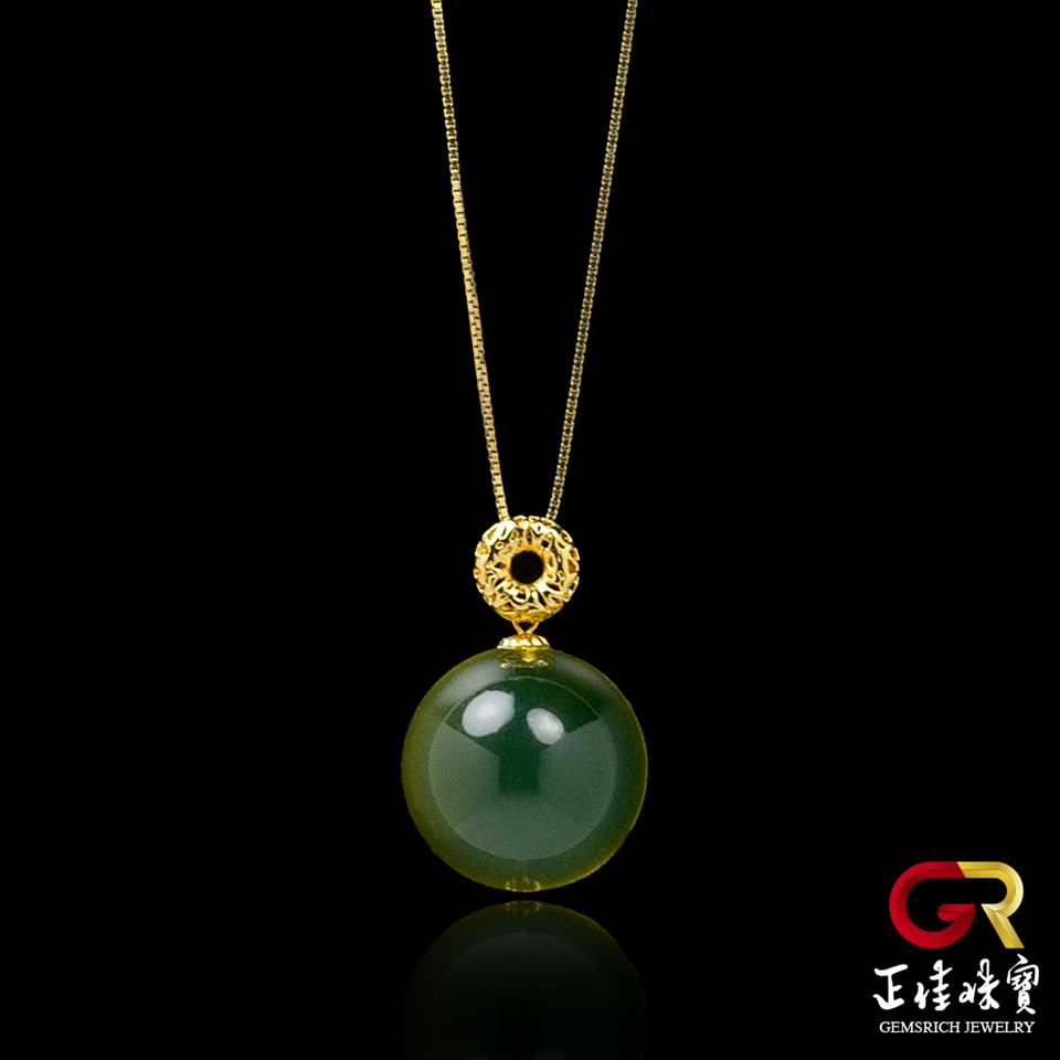 琥珀藍珀 天然超淨水湛藍藍珀 16mm 藍珀吊墜|18K金頭