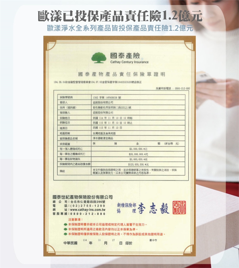 ● 消耗品(如;電池、燈管、濾芯類…等)則不享有1年保固。