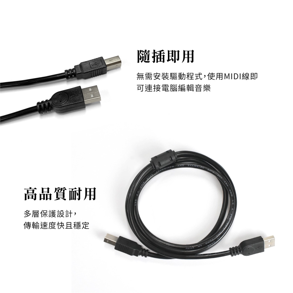 ●隨插即用:無需安裝驅動程式,使用MIDI線即可連接電腦編輯音樂