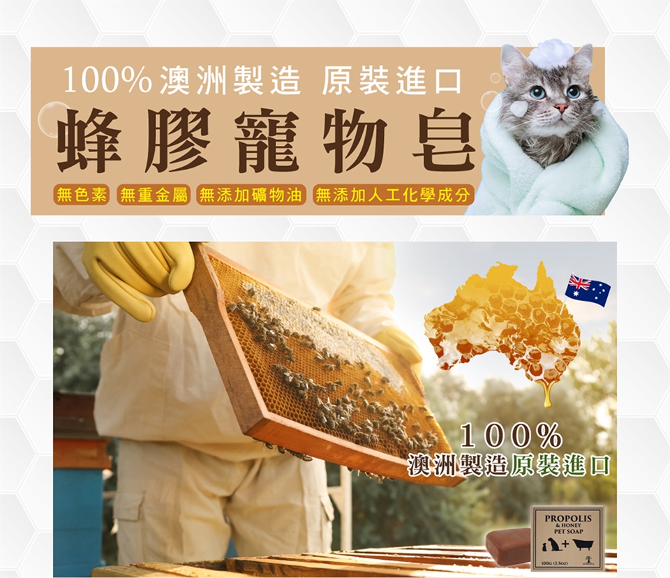 - 蜂膠與蜂蜜製成,寵物專用沐浴皂