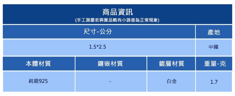 ◆飾品一經使用可能隨時間失去光澤或褪色,此為正常物理現象,妥善使用拭銀布即可恢復光澤。