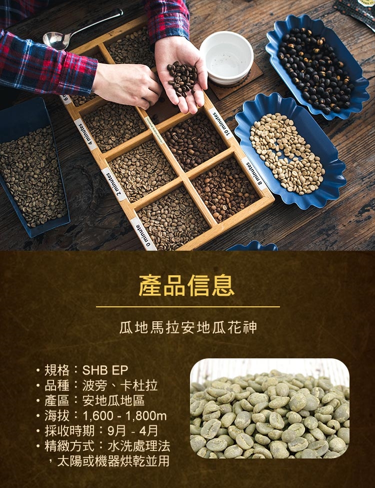品名:E7HomeCafe一起烘咖啡 瓜地馬拉安地瓜花神水洗處理咖啡生豆500克