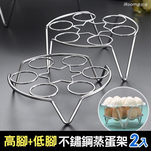 【iRoom優倍適】不鏽鋼7孔多功能蒸架《高腳+低腳》2入組 (蒸蛋架 電鍋蒸架 不鏽鋼蒸架 隔熱架)