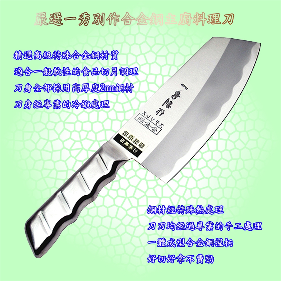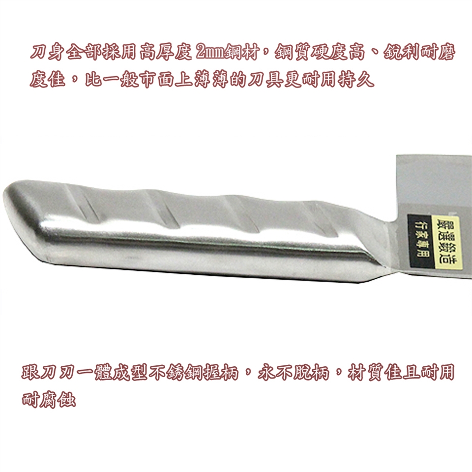 ■跟刀刃一體成型合金鋼握柄,永不脫柄,材質佳且耐用,耐腐蝕。