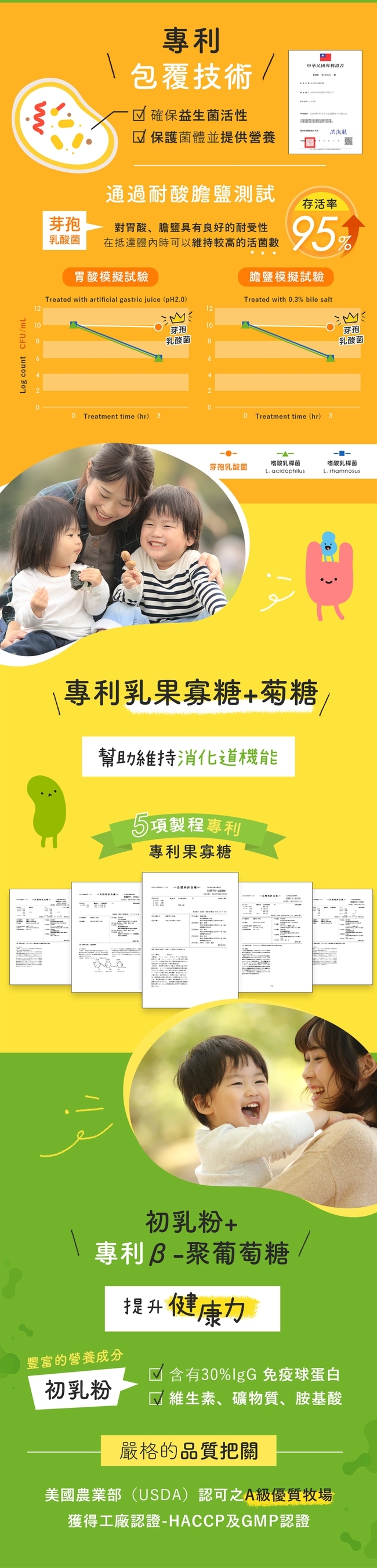 成份: 乳糖、蔗糖、葡萄糖、嗜熱鏈球菌(含麥芽糊精、嗜熱鏈球菌Streptococcus thermophilus)、阿拉伯膠、果寡糖、草莓果汁粉[含草莓濃縮汁、麥芽糊精、氧化澱粉(樹薯)、紅甜菜汁、檸檬酸、香料]、蘋果濃縮汁、二氧化矽、紅甜菜粉(含紅甜菜濃縮汁、麥芽糊精)、副乾酪乳酸桿菌(含麥芽糊精、副乾酪乳酸桿菌Lactobacillus paracasei、微結晶狀α-纖維素)、初乳粉[含牛初乳、牛奶蛋白、奶粉、中鏈三酸甘油酯、卵磷脂(葵花)、香料(含麥芽糊精、香料、二氧化矽)]、DL-蘋果酸、香料(含香料、丙二醇、乳糖、二氧化矽、酒精)、檸檬酸、菊糖、乳果寡醣、複合乳酸菌(含微結晶狀α-纖維素、乾酪乳桿菌Lactobacillus casei、植物乳桿菌Lactobacillus plantarum、鼠李糖乳桿菌Lactobacillus rhamnosus、短雙歧桿菌Bifidobacterium breve、動物雙歧桿菌乳雙歧亞種Bifidobacterium animalis subsp. Lactis、長雙歧桿菌Bifidobacterium longum、副乾酪乳桿菌Lactobacillus paracasei、嗜熱鏈球菌Streptococcus thermophilus、嗜酸乳桿菌Lactobacillus acidophilus、羅伊氏乳桿菌Lactobacillus reuteri、兩歧雙歧桿菌Bifidobacterium bifidum)、β-聚葡萄糖、芽孢乳酸菌(含麥芽糊精、芽孢乳酸菌Bacillus coagulans)、動物雙歧桿菌乳雙歧亞種(含動物雙歧桿菌乳雙歧亞種Bifidobacterium animalis subsp. Lactis、麥芽糊精)、蔗糖素(甜味劑)、鼠李糖乳桿菌(含鼠李糖乳桿菌Lactobacillus rhamnosus、麥芽糊精)