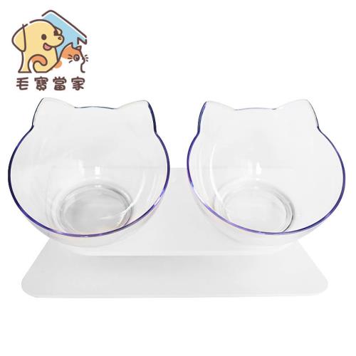 (毛寶當家)可愛貓臉雙碗架 貓雙碗 飼料碗 防滑雙碗 寵物餐具 雙碗架