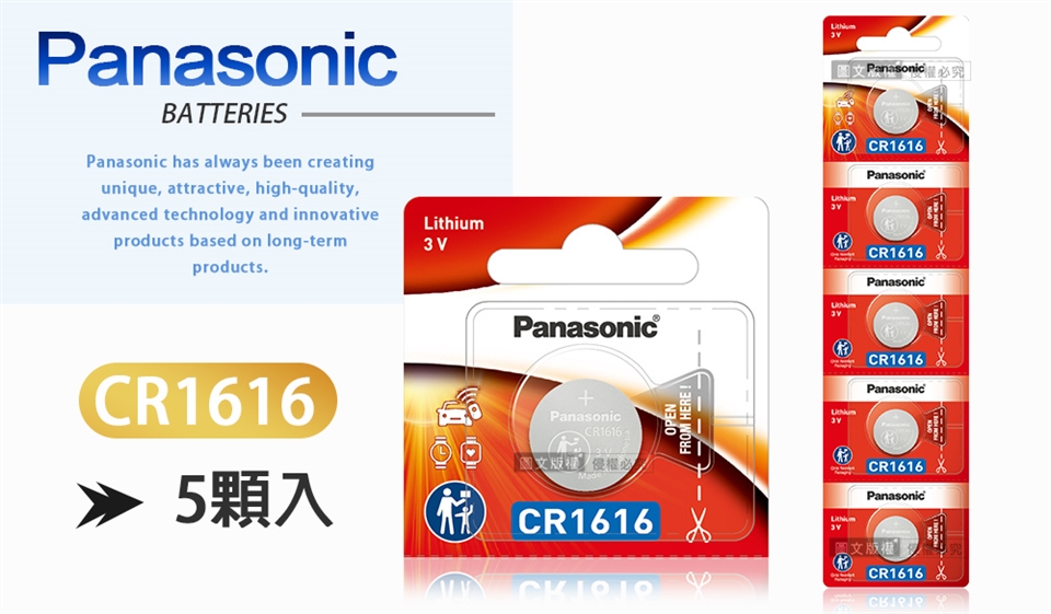 Panasonic 國際牌 CR1616 鈕扣型電池 3V專用鋰電池(5顆入)