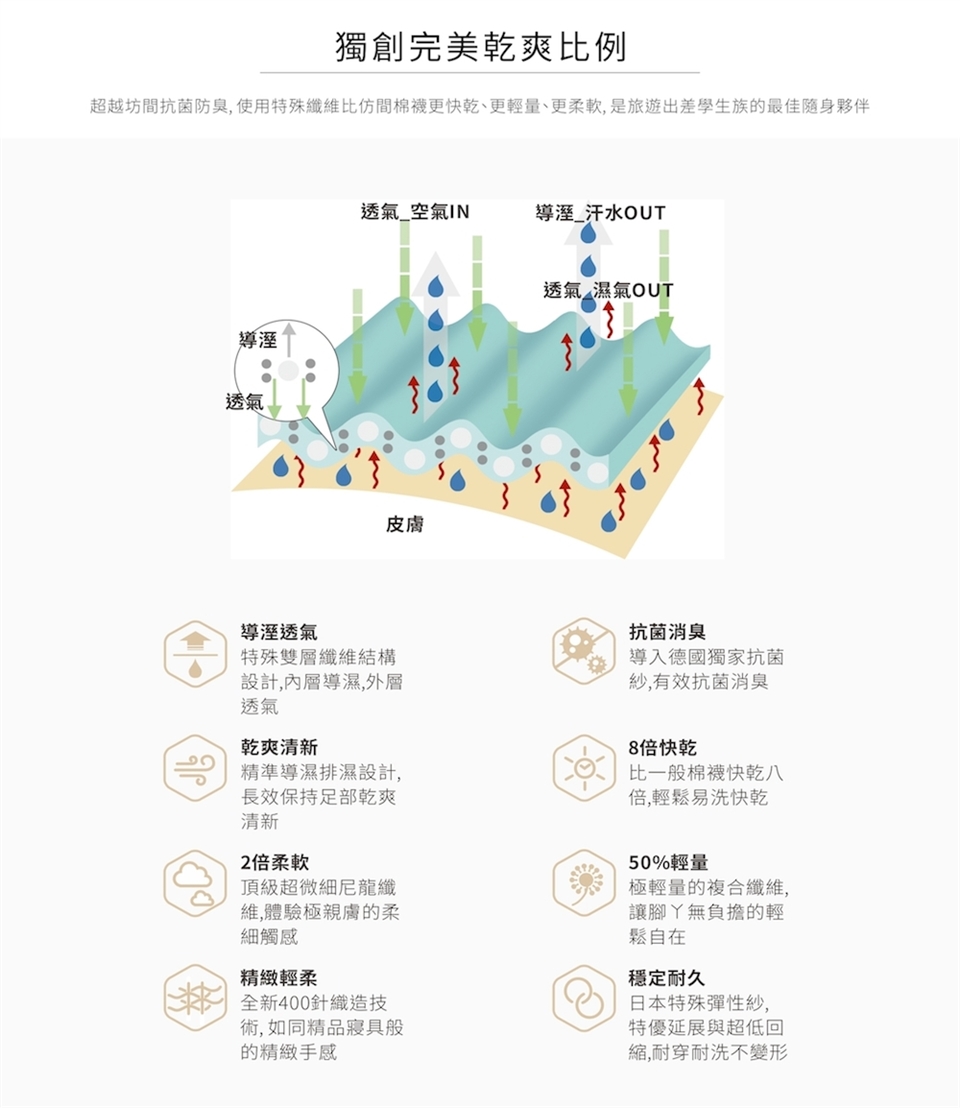 材質:35% 機能性再生纖維 60% 聚醯胺超細纖維 5% 彈性纖維