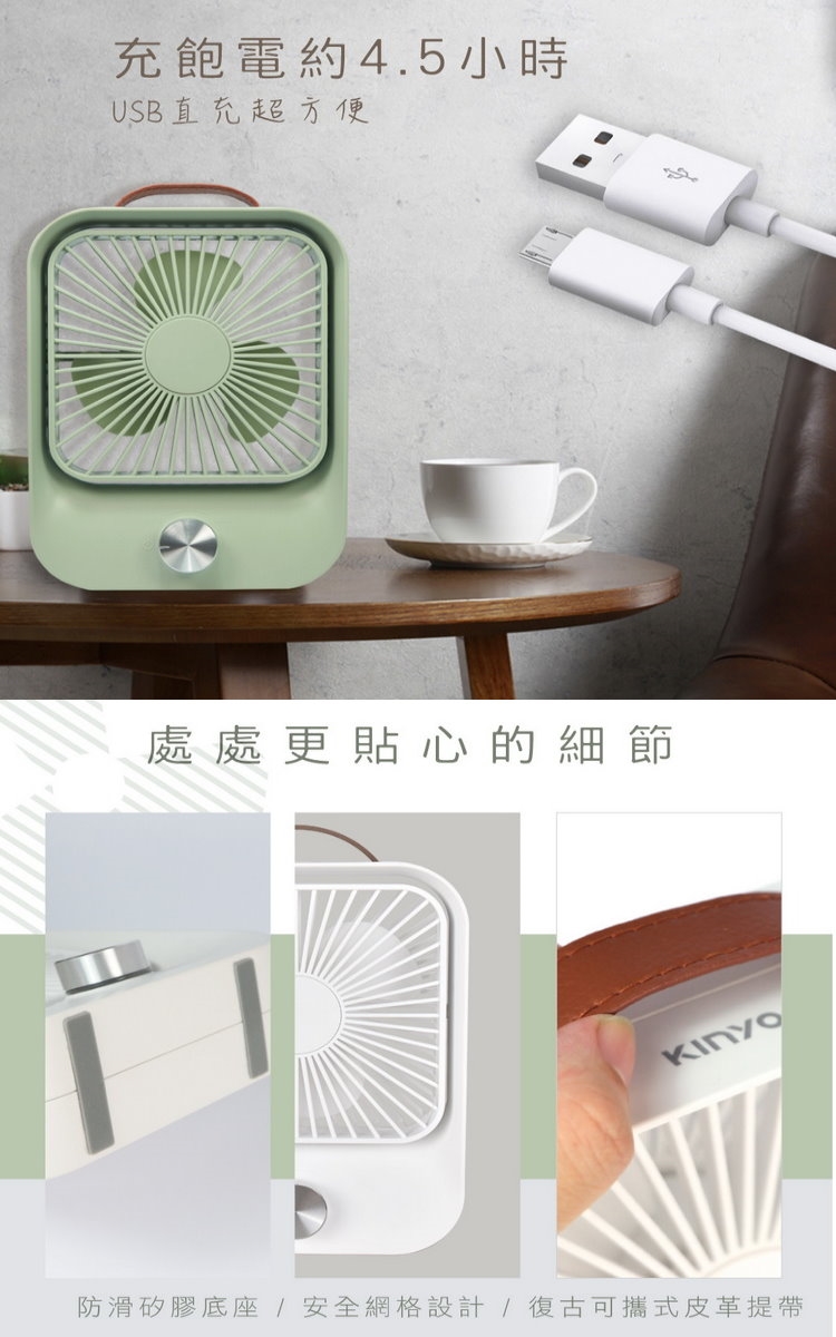 【KINYO】USB充電式5吋復古無段式桌扇(UF-5750)