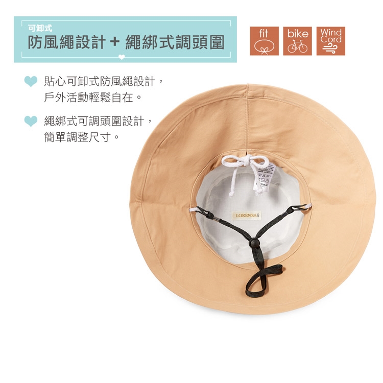 - 繩綁式調整頭圍,小頭圍也能隨心調整