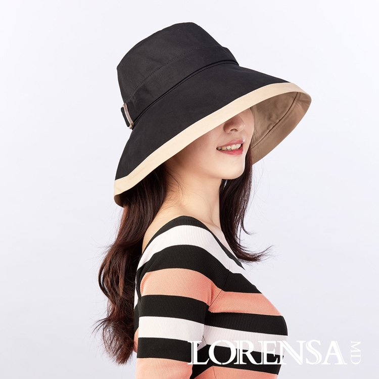 - 帽簷邊配色設計,黑色飾帶搭配椰殼扣