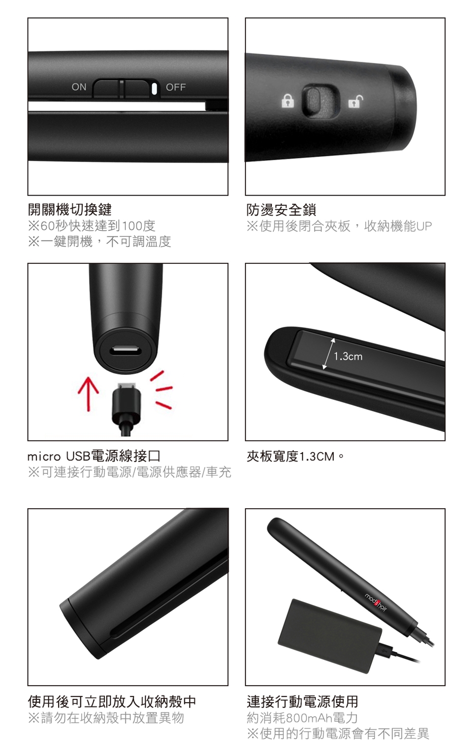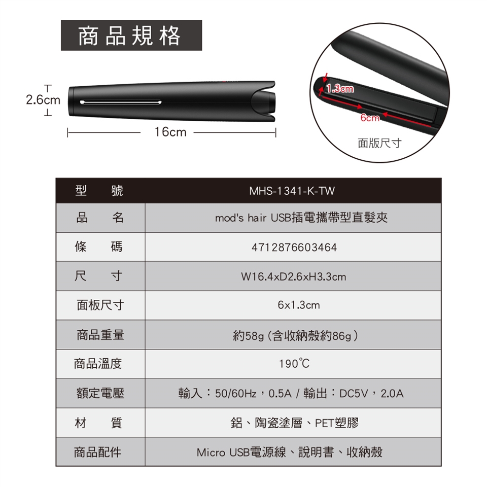 mod's hair USB插電攜帶型直髮夾MHS-1341-K-TW