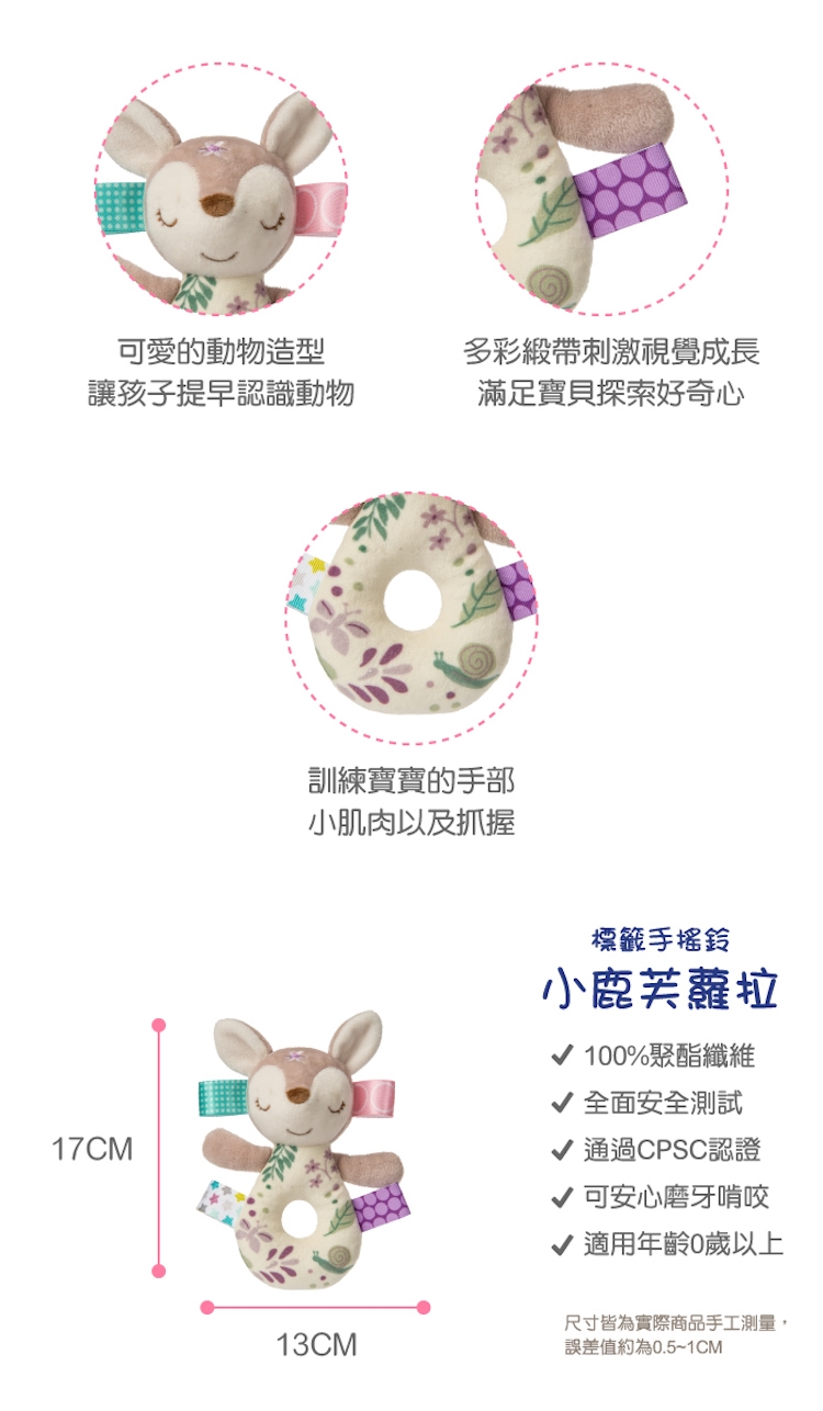 "●小鹿芙蘿拉-超萌的造型,搭配薰衣草與蕨葉的紋理毛絨,絕對是疼愛寶貝們的首選!