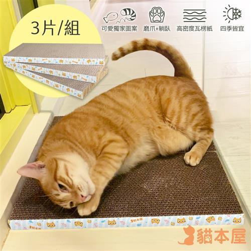 貓本屋 可愛活跳蝦 平板型貓抓板(三片組)