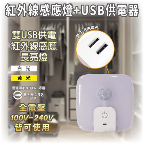 [明沛]紅外線感應燈+雙USB供電器-觸摸式開關-亮度可調-床邊燈-小夜燈-感應燈-白光 黃光可選擇-MP5722