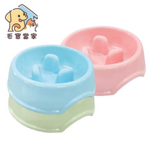 (毛寶當家)糖果色三柱慢食碗*2入 飼料碗 防噎碗 寵物餐具 改善狼吞虎嚥