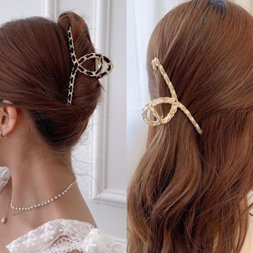 【Emi艾迷】韓國緞帶小香風金屬抓夾髮夾