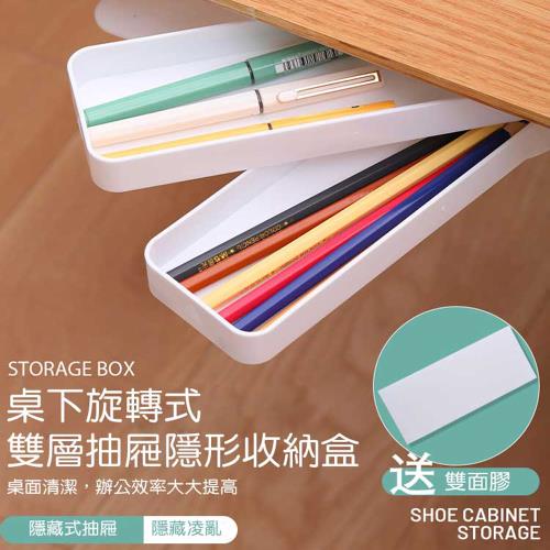 Conalife 桌下旋轉式雙層抽屜隱形收納盒 (4入)