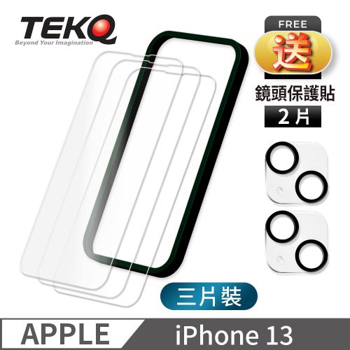 【TEKQ】iPhone 13 9H鋼化玻璃 螢幕保護貼 3入 附貼膜神器 送鏡頭保護貼2片