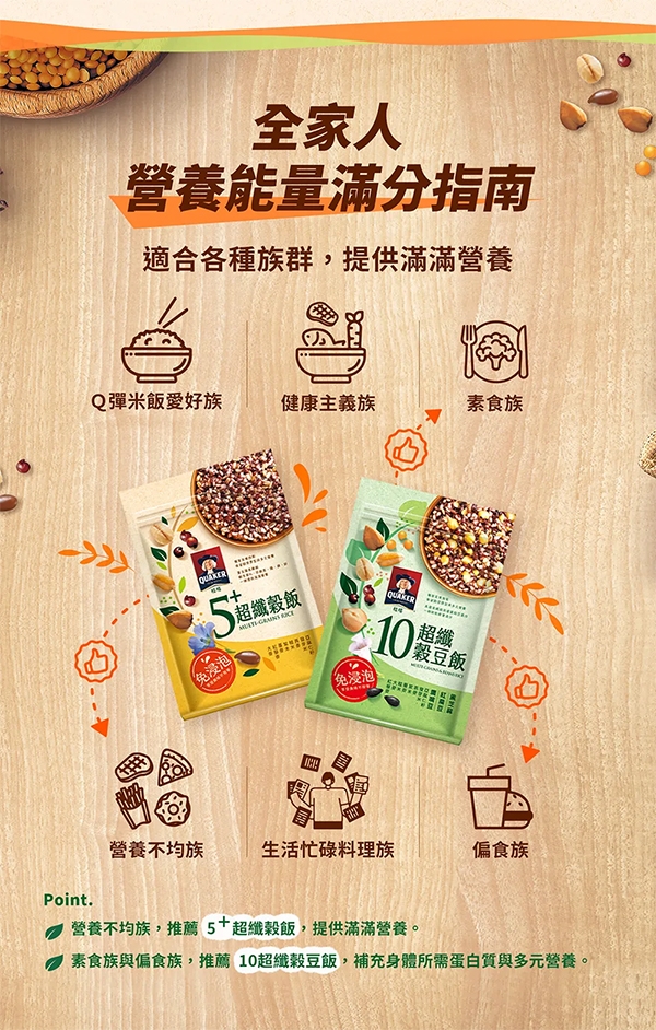 ◆ Point.適合營養不均族,推薦5+超纖穀飯,提供滿滿營養