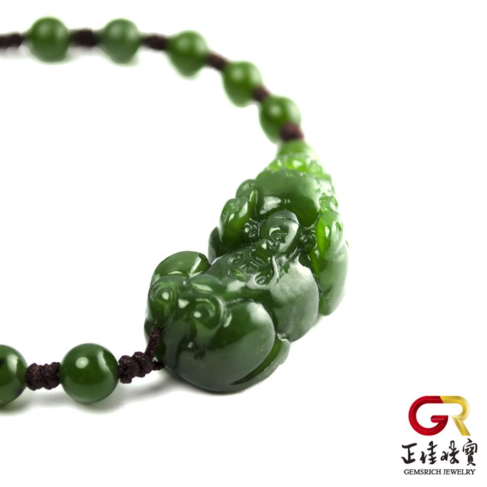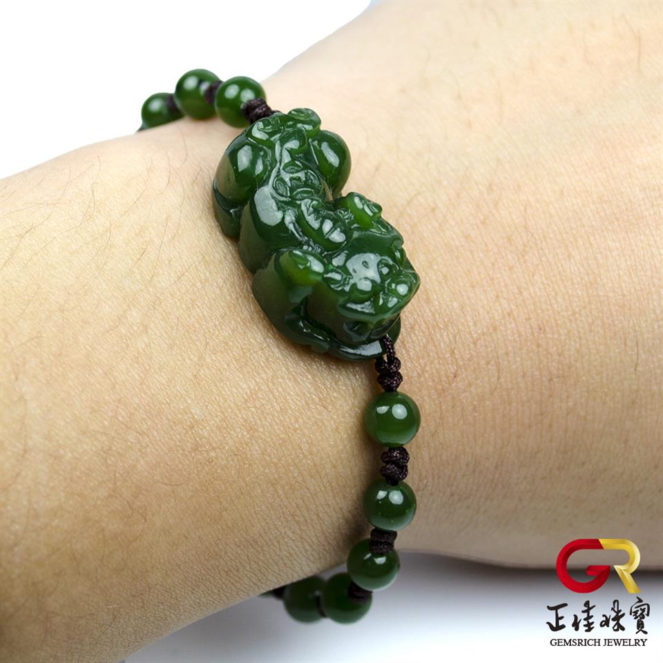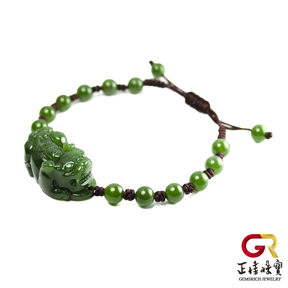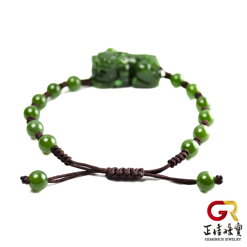 和田碧玉 金錢貔貅手串 典藏貔貅手珠|棕色可調式手工中國繩繩結