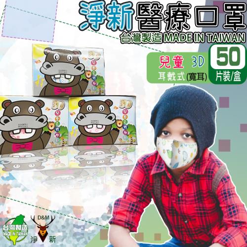 【淨新】兒童3D寬耳 適用4~7歲 立體口罩 醫療級雙鋼印 (50入/盒 醫療用/國家隊/防飛沫/灰塵/防疫)