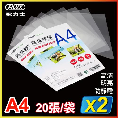 【優選特惠組】FILUX 飛力士 高清明亮防靜電A4護貝膠膜(共40張)