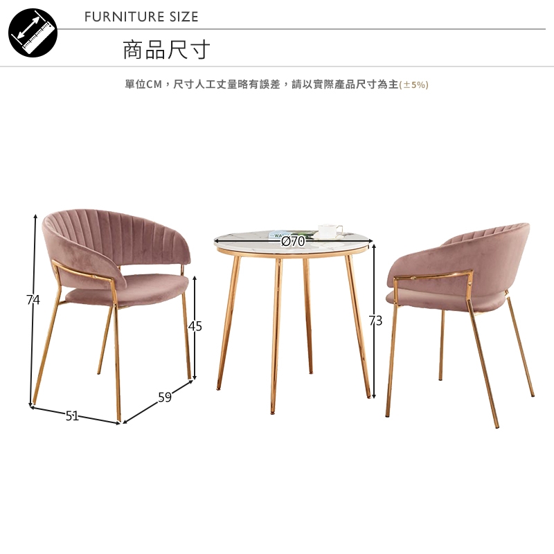 椅墊採用高級質感絨布,觸感細緻迷人,提升居家空間美感!
