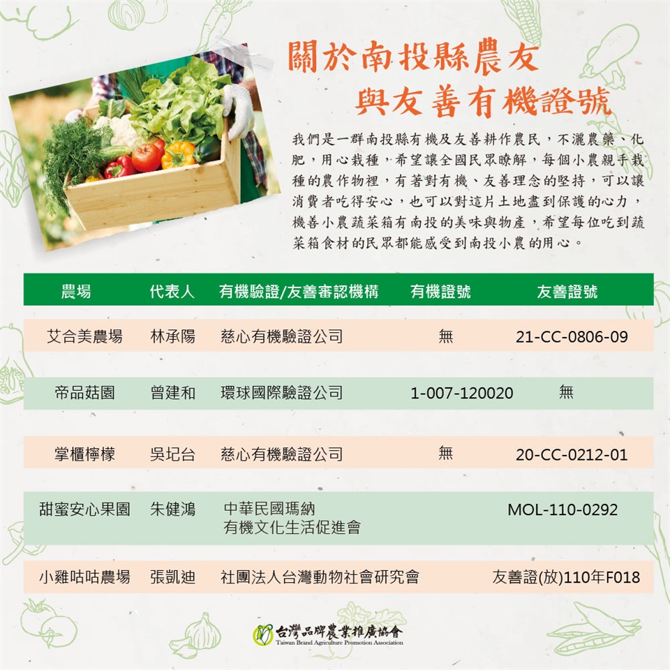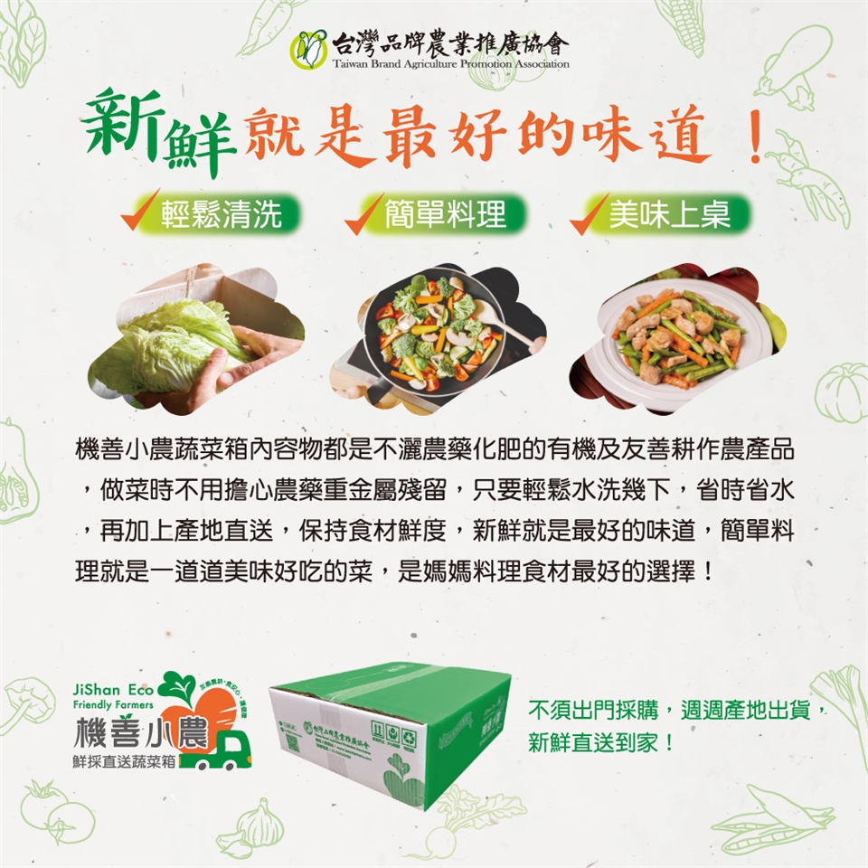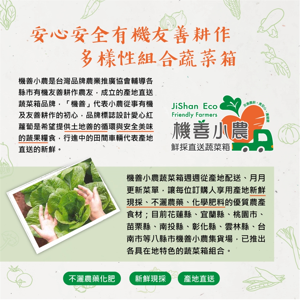 👉蔬果易受季節、氣候、採收量等因素影響,出貨品項將依當週產區農友採收現況隨選出貨。