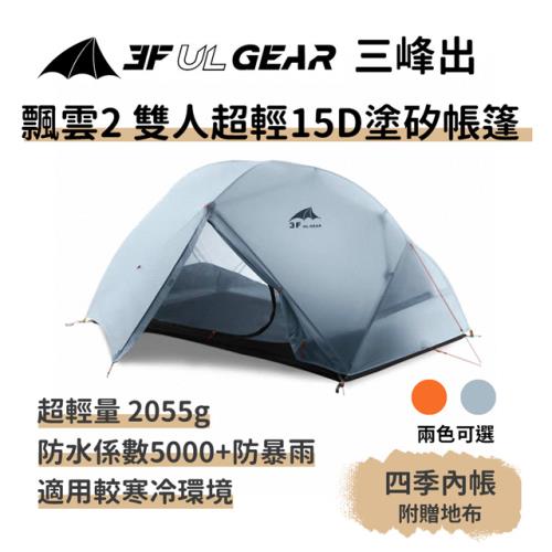 三峰出【飄雲2 雙人超輕15D塗矽帳篷 四季 附贈地布】雙門 附地布 自立帳篷 登山 露營 高山帳篷 抗風 防暴雨 野營