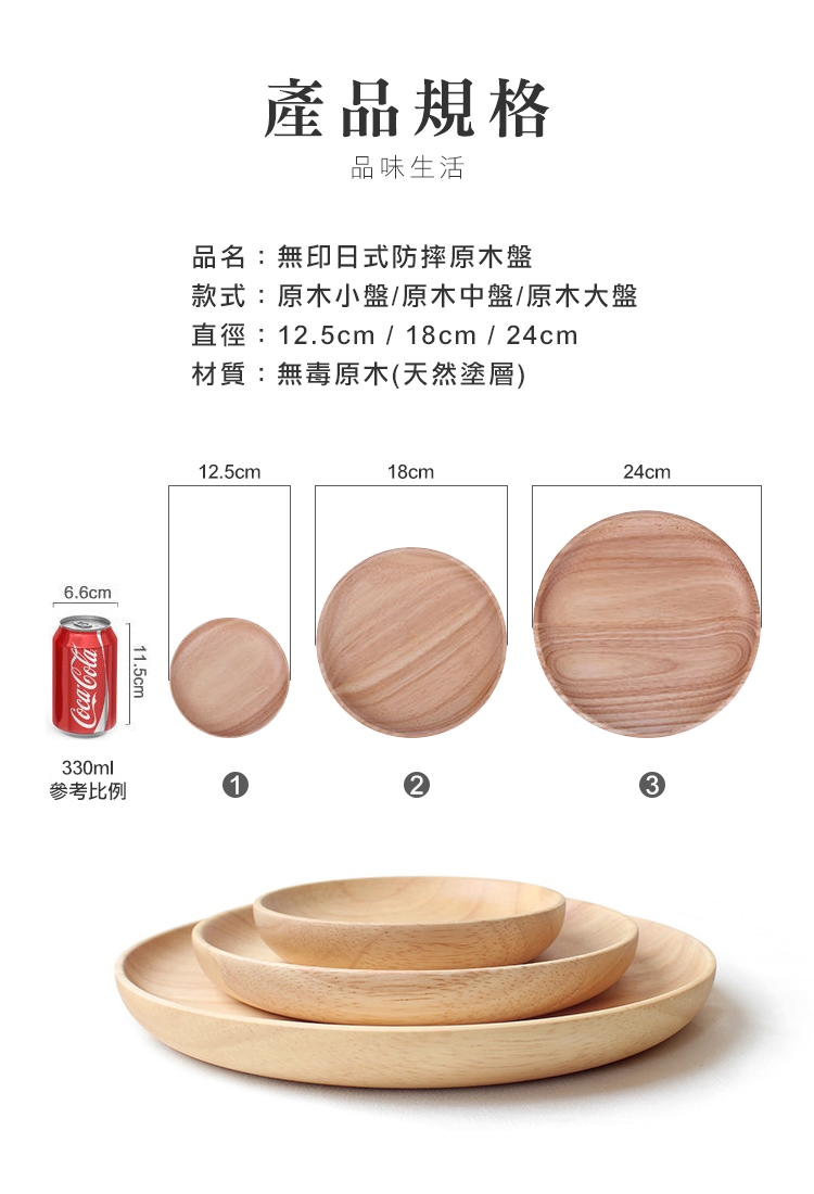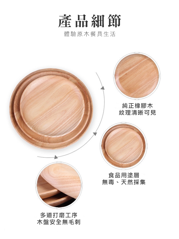 日系樸實風,CP值的木圓盤器皿,採用天然原木製成,食品用天然塗層,SGS檢驗,不含螢光增色劑,使用安心!多道細緻打磨 光滑細緻不傷手。三種尺寸,可依需求隨心搭配,別於塑膠,天然原色替您營造典雅氛圍!讓餐桌不再枯燥單調!