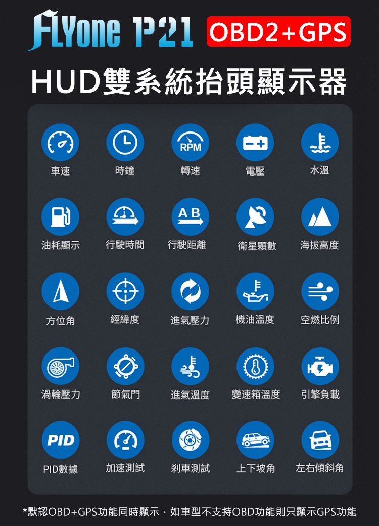 ※ HUD產品只適用於OBDII和EOBD介面,HUD產品不支持OBD I 和JOBD。