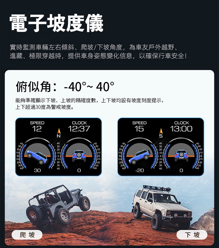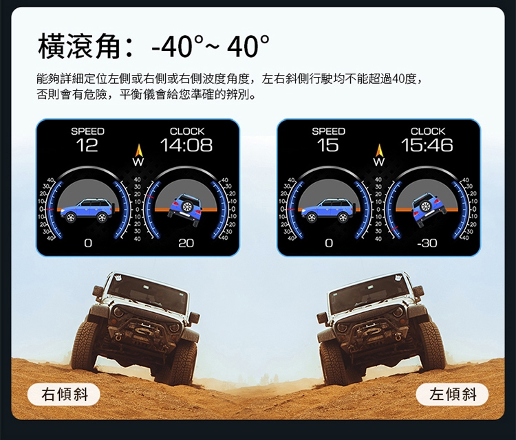 ■電子坡度儀,實時監測車輛左右傾斜、上坡下坡角度